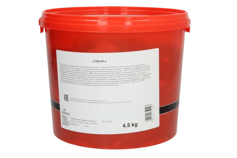 Το LITEN EP-2 4,5KG είναι υψηλής απόδοσης πολυλειτουργικό γράσο λιθίου, σχεδιασμένο για βαριά φορτωμένα τριβόμενα σημεία και ευρύ φάσμα βιομηχανικών και μηχανολογικών εφαρμογών. Προσφέρει εξαιρετική αντοχή στη φθορά, στη διάβρωση και στο νερό, εξασφαλίζοντας σταθερή λίπανση και προστασία υπό ακραίες συνθήκες.